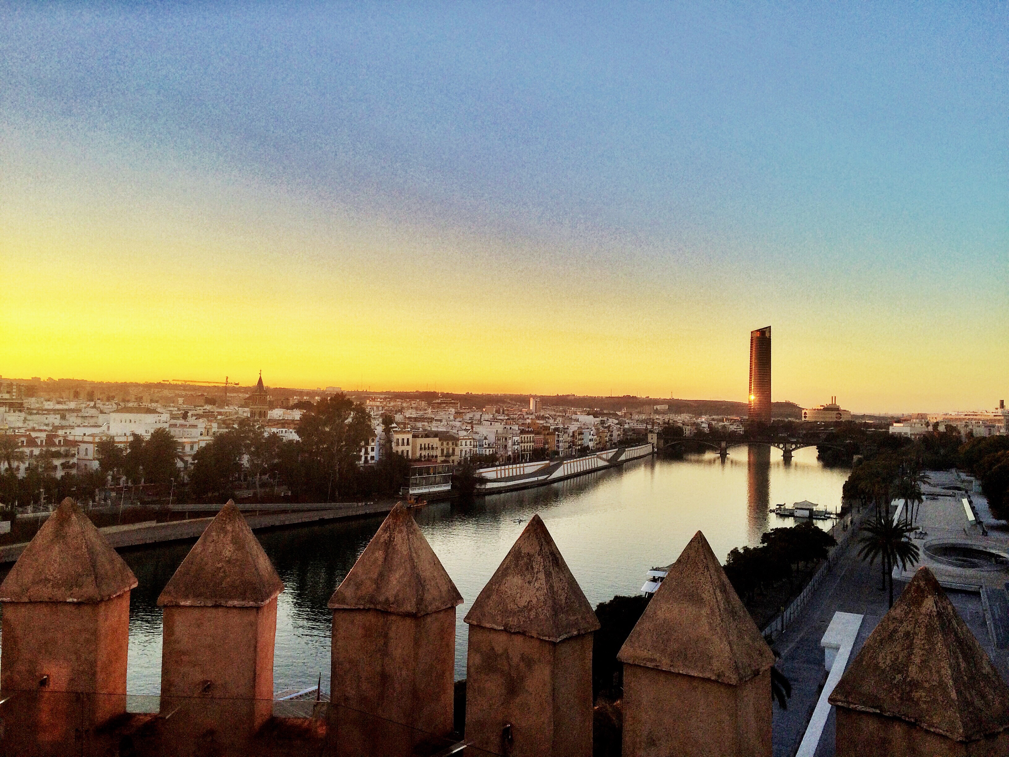 At 5pm los estudiantes y yo vamos a el Torre del Oro. It was so beautiful to see the views at the top- of the river with the sun setting! It was designed as a defensive outpost of the city walls to oversee access to the Guadalquivir. It was built in about 1220 and owes its name to the brilliant colored tiles that covered it. Nowadays it houses a small naval museum.