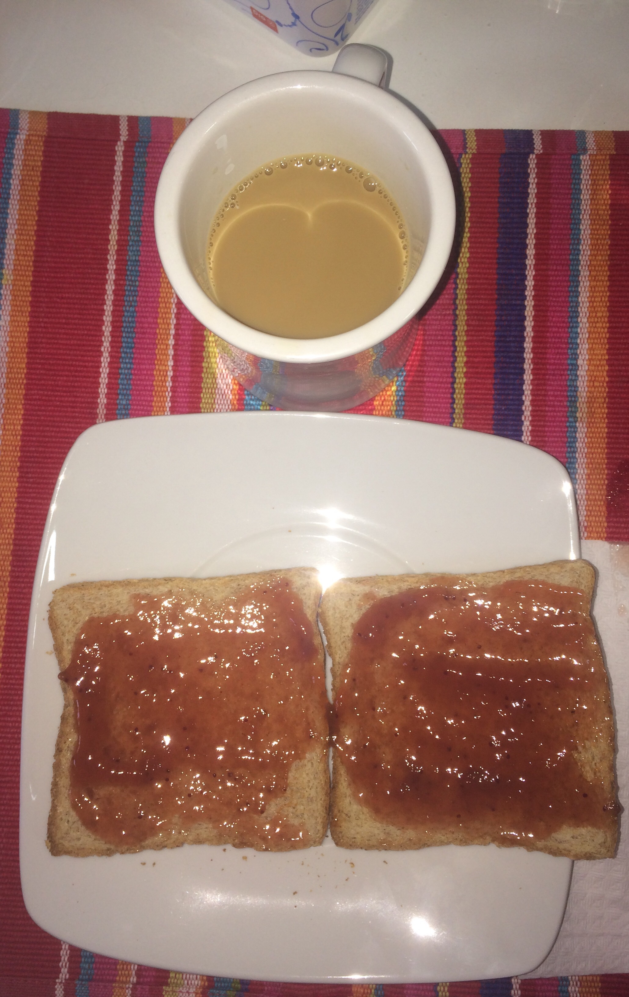 After all this time I finally remembered to take a picture of my breakfast. Cafe con leche (& lots of sugar) y pan, y fruta.