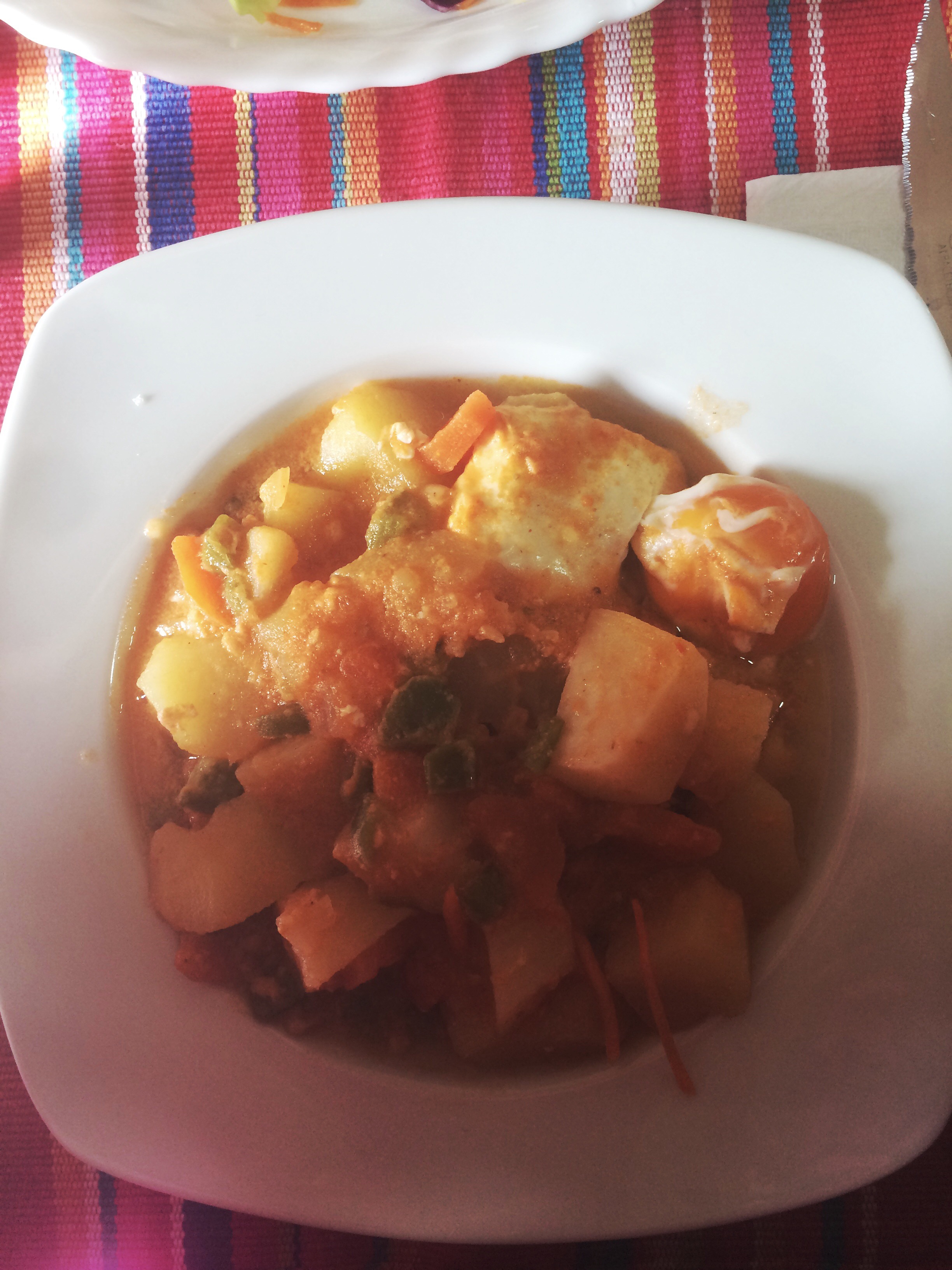 Today for lunch we had a form of potato soup with vegetables & eggs- yum! Also on the side was bread and a salad which included white asperagus.