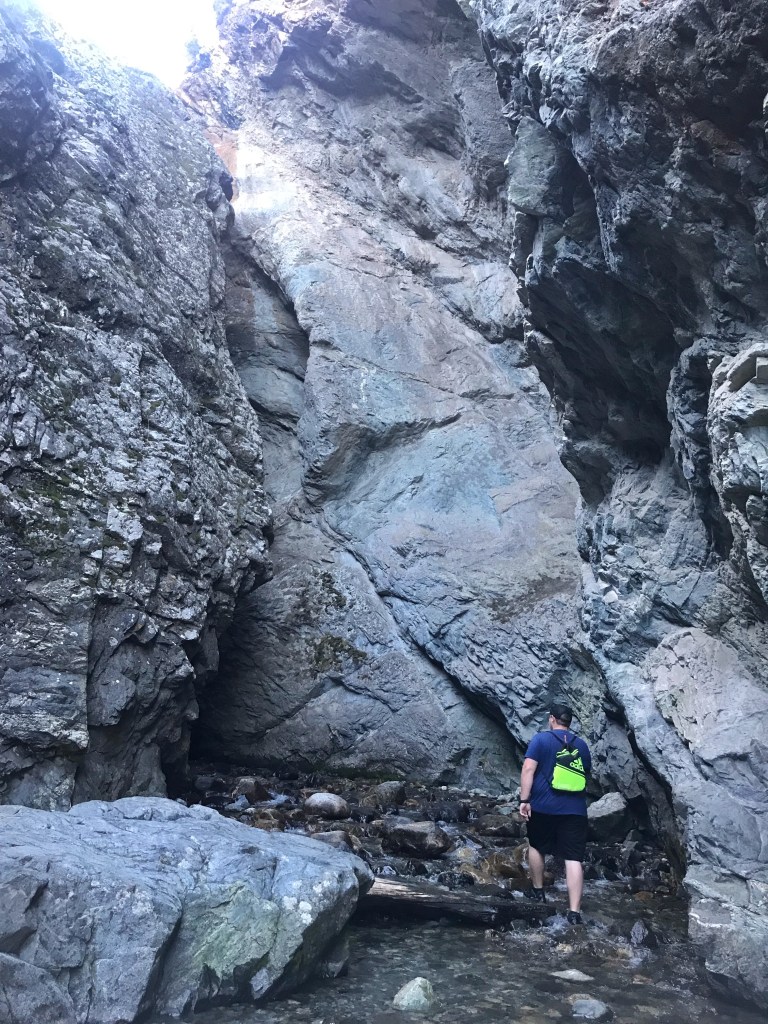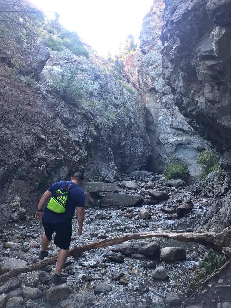You walk about half a mile up at an incline that is fully rocks – I’d suggest wearing shoes for that part but then again I wore flip flops because I knew there was going to be a creek with rocks I’d have to walk over to get to the falls. So really up to you! Just a rocky path. I’d recommend bringing sandals or flip-flops or water shoes since you have to briefly walk through the water with rocks to get to the falls. The water wasn’t high at all for me, didn’t even go up to my ankles.