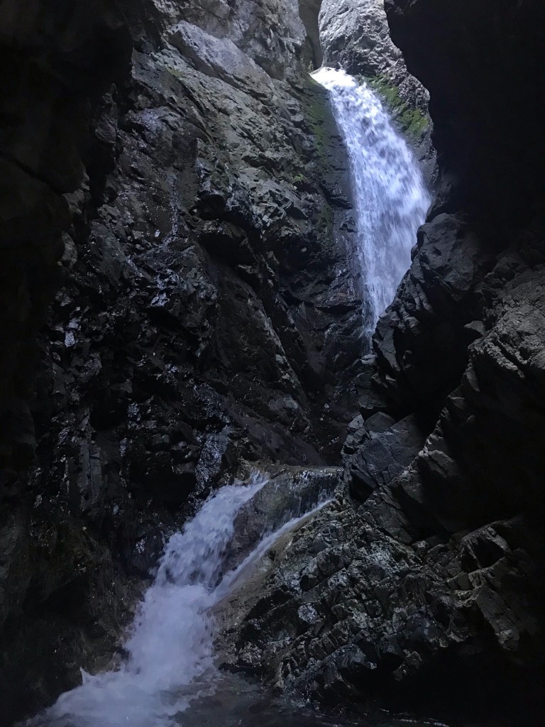 The falls are sort of in a “cave” but it’s not the kind of cave you’d think – open top and not that dark whatsoever 🙂 I was told to bring bug spray but when I went today around 9:30am there weren’t that many bugs at all! I’ve been told otherwise, so bring some if you have it. Factoring in the time it took to drive up to the trailhead, hike to the falls, hang around a bit, and drive back down it was a total of 1 hour and 45 minutes.