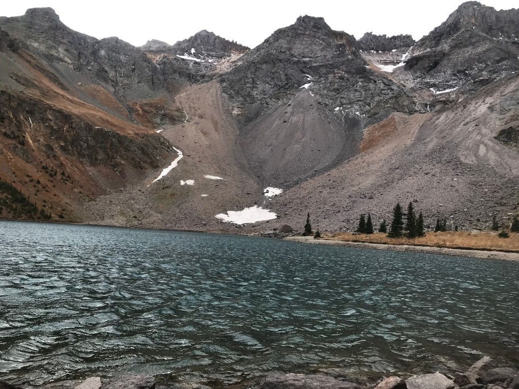 Once we got to the lower lake it quickly became extremely windy. If you decide to go in the fall time, I would make sure you dress properly. Thankfully we brought hats, gloves, scarves, and layers – but it was still uncomfortable. The sun still wasn’t out once we got to the lower lake, so the water wasn’t as bright as I had seen in photos. We stopped and took a few photos at the lake before reaching the higher ground to get better pictures of the lake like I had seen online.